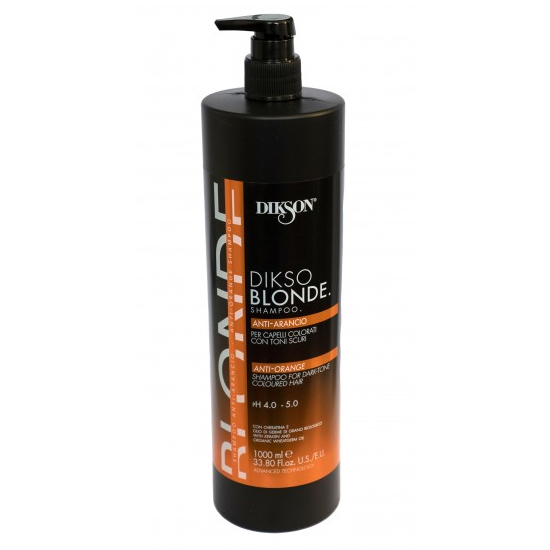 Dikso Blonde Anti-Orange Shampoo - це шампунь із синіми пігментами, який допомагає уникнути небажаних мідних, червоних або помаранчевих тонів на волоссі.