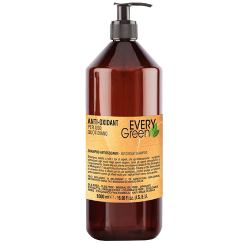 Dikson Every Green шампунь проти передчасного старіння волосся та шкіри голови. Шампунь підходить для всіх типів волосся. Лінійка антиоксидантних засобів EveryGreen, до якої також входять Every Green кондиціонер для молодості волосся та Every Green маска проти старіння волосся, - це незамінна турбота про волосся, яке щодня відчувають стрес.